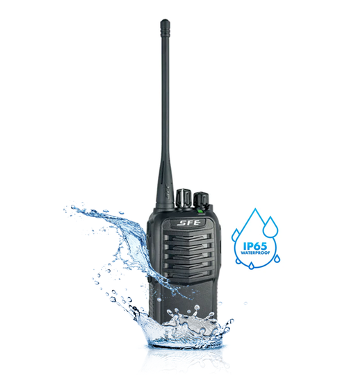 SFE RadiosSFE S555 VHF Portable radio complete with battery, belt clip, antenna & charger. Range: 3 - 5 km Portable to Portable Features: Powerful Outpu...